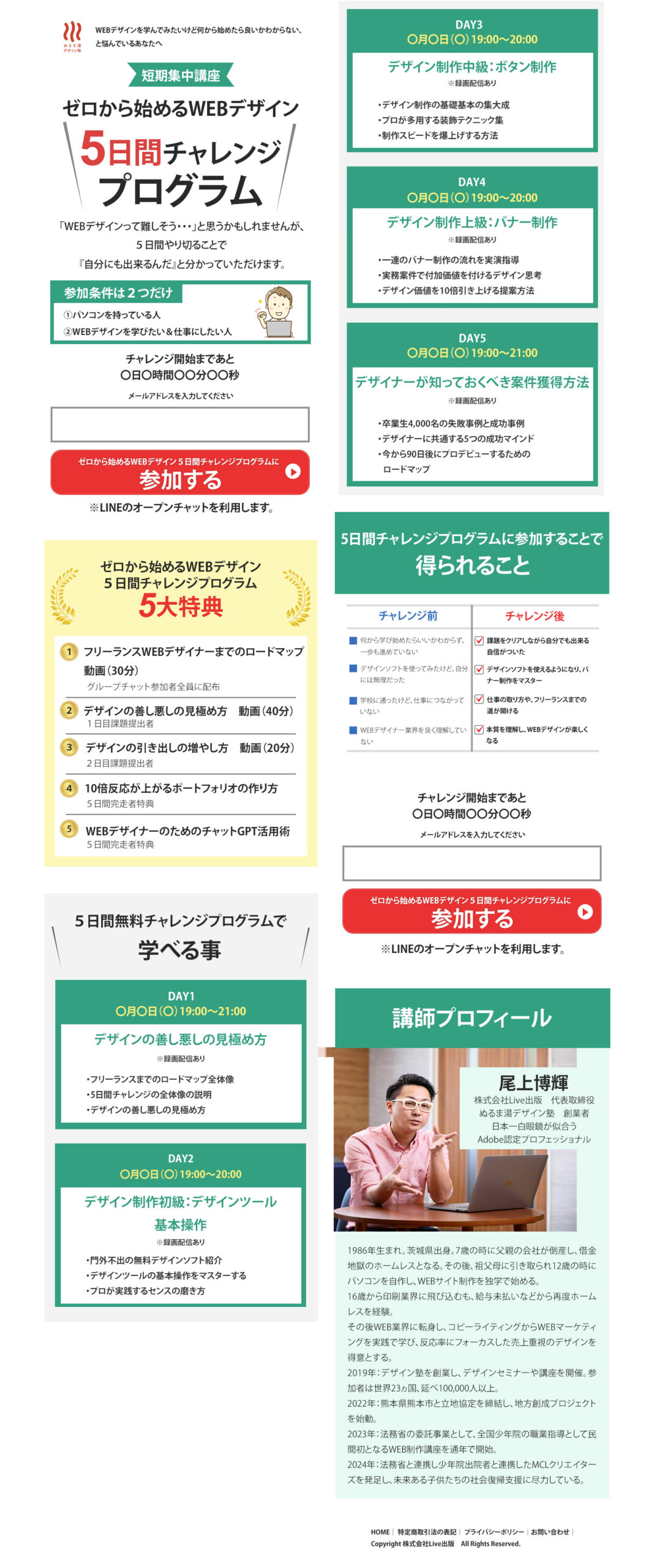 5日間チャレンジプログラムLP 2025年11月14日 最終更新日時 : 2025年11月15日 ojima 全体的にIT業界カラーである緑色で統一し、その中で得点は地色で目立たせました。ボタンは緑色の中で目立つオレンジにしています。 \ 最新情報をチェック /